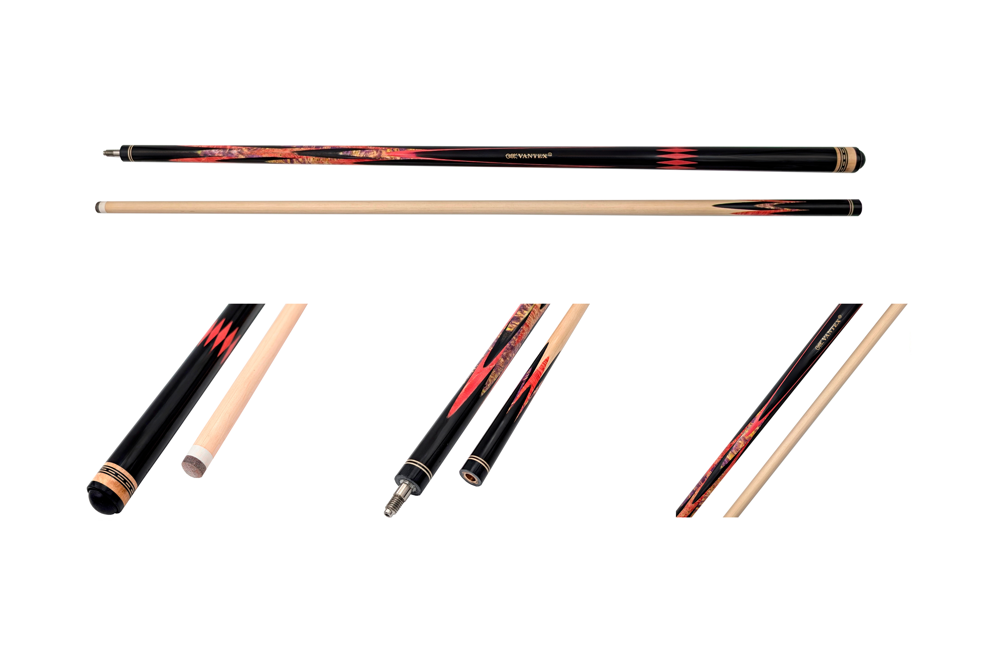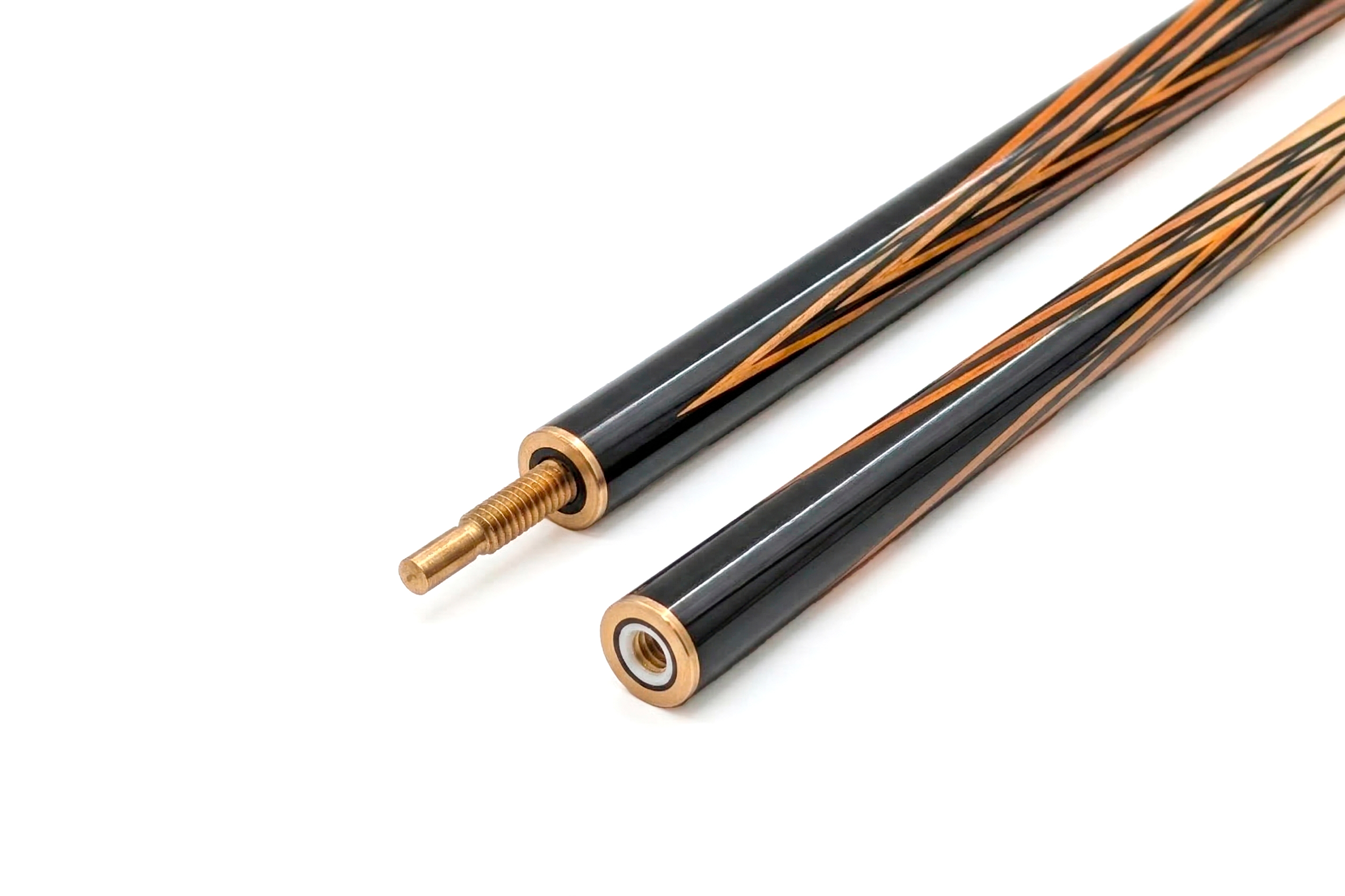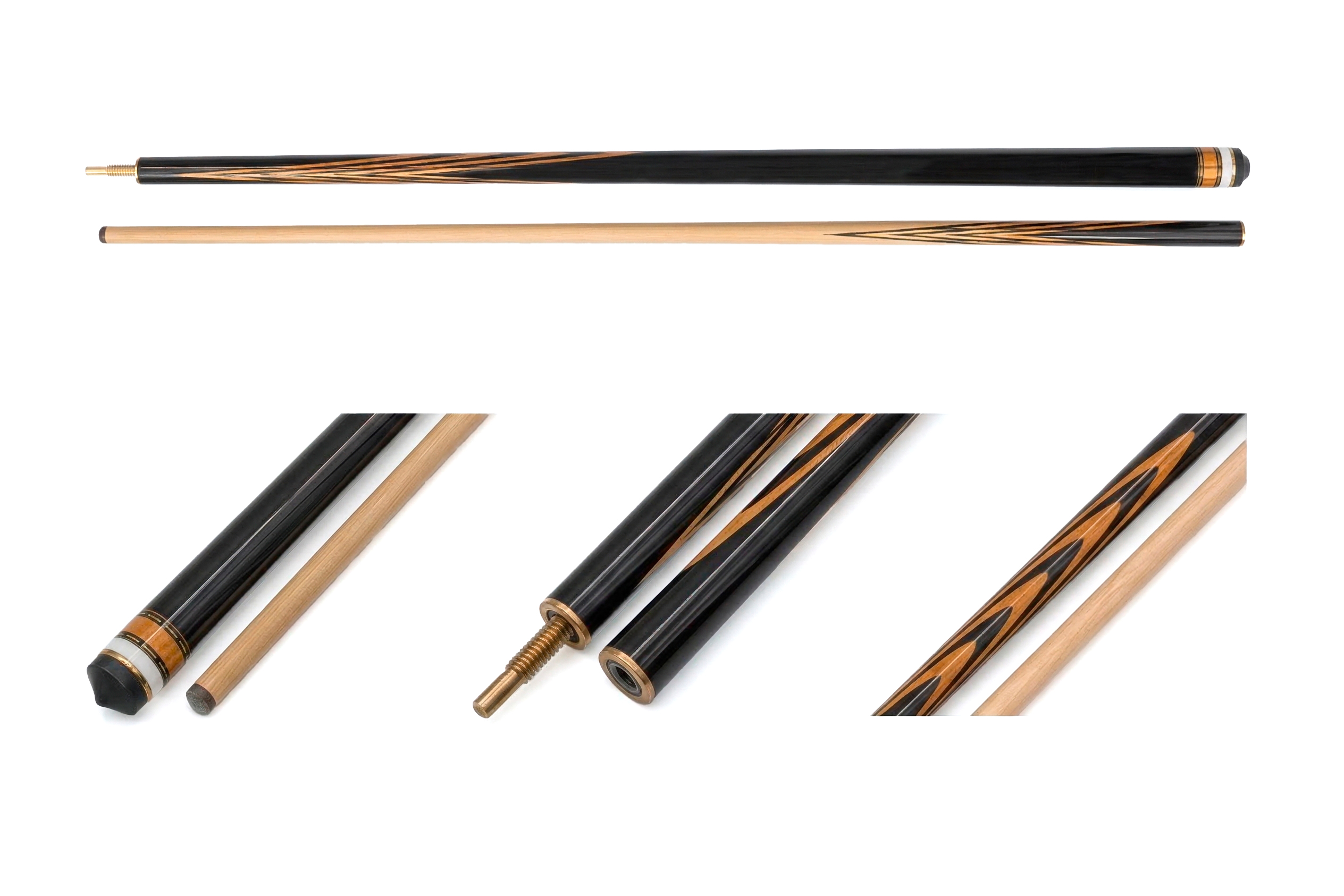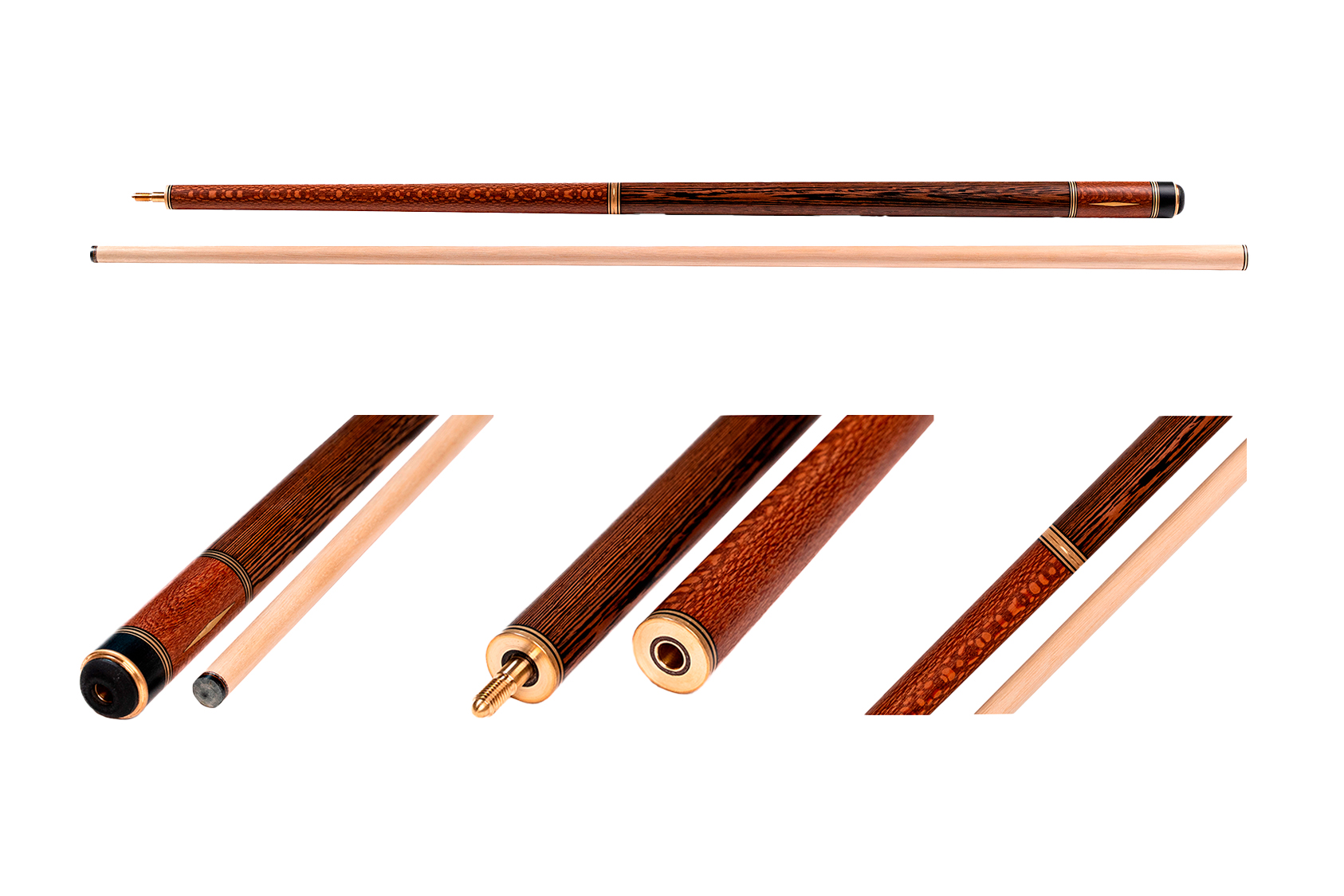 Большое влияние на выбор модели оказывают элементы оформления: обмотка, резьба на рукаве, инкрустация камнем, цвет и форма запилов. Древесина для изготовления выбирается твердая, можно купить разборный кий для русского бильярда из граба, палисандра, с запилами из груши, карельской березы и др.